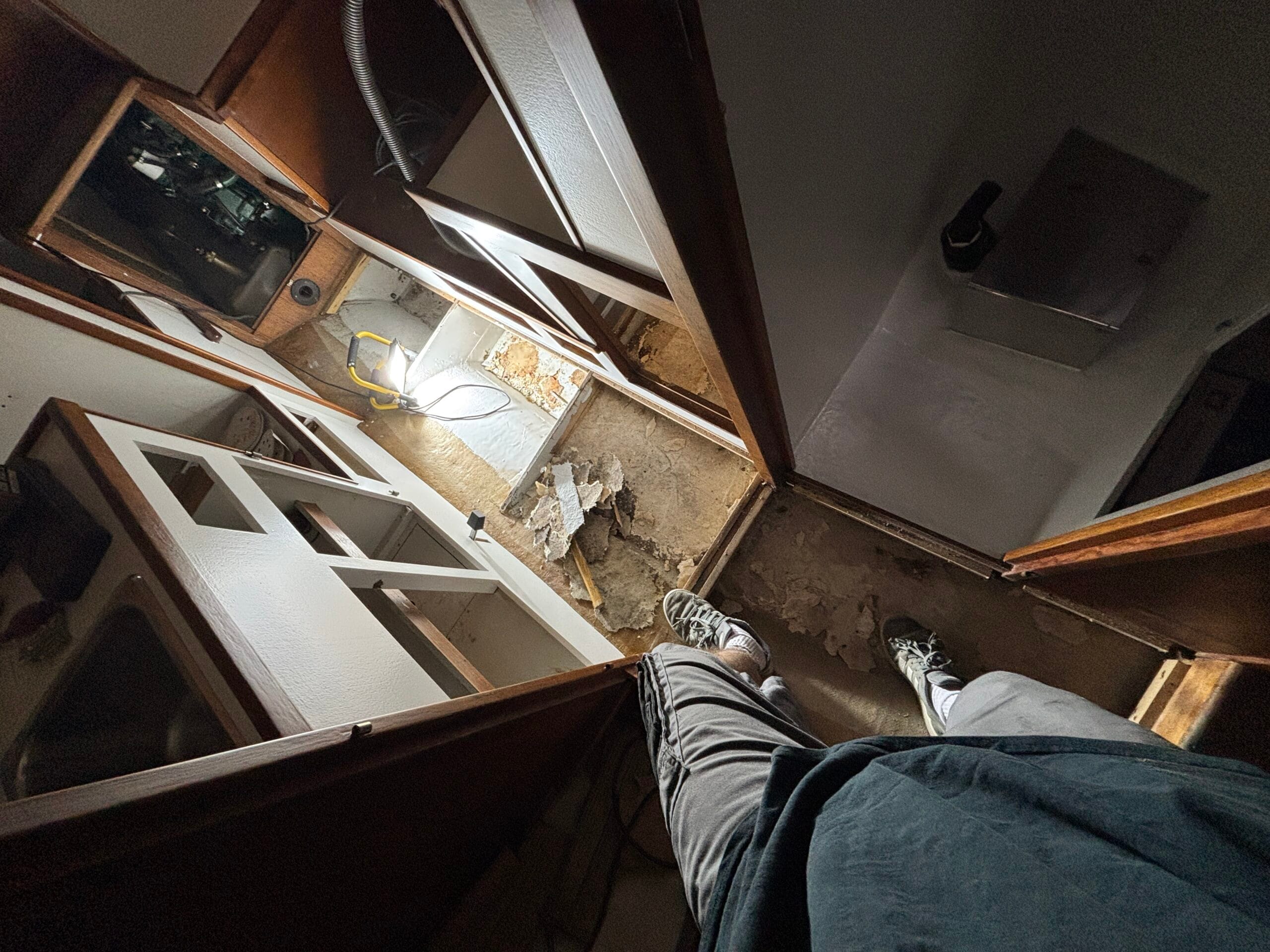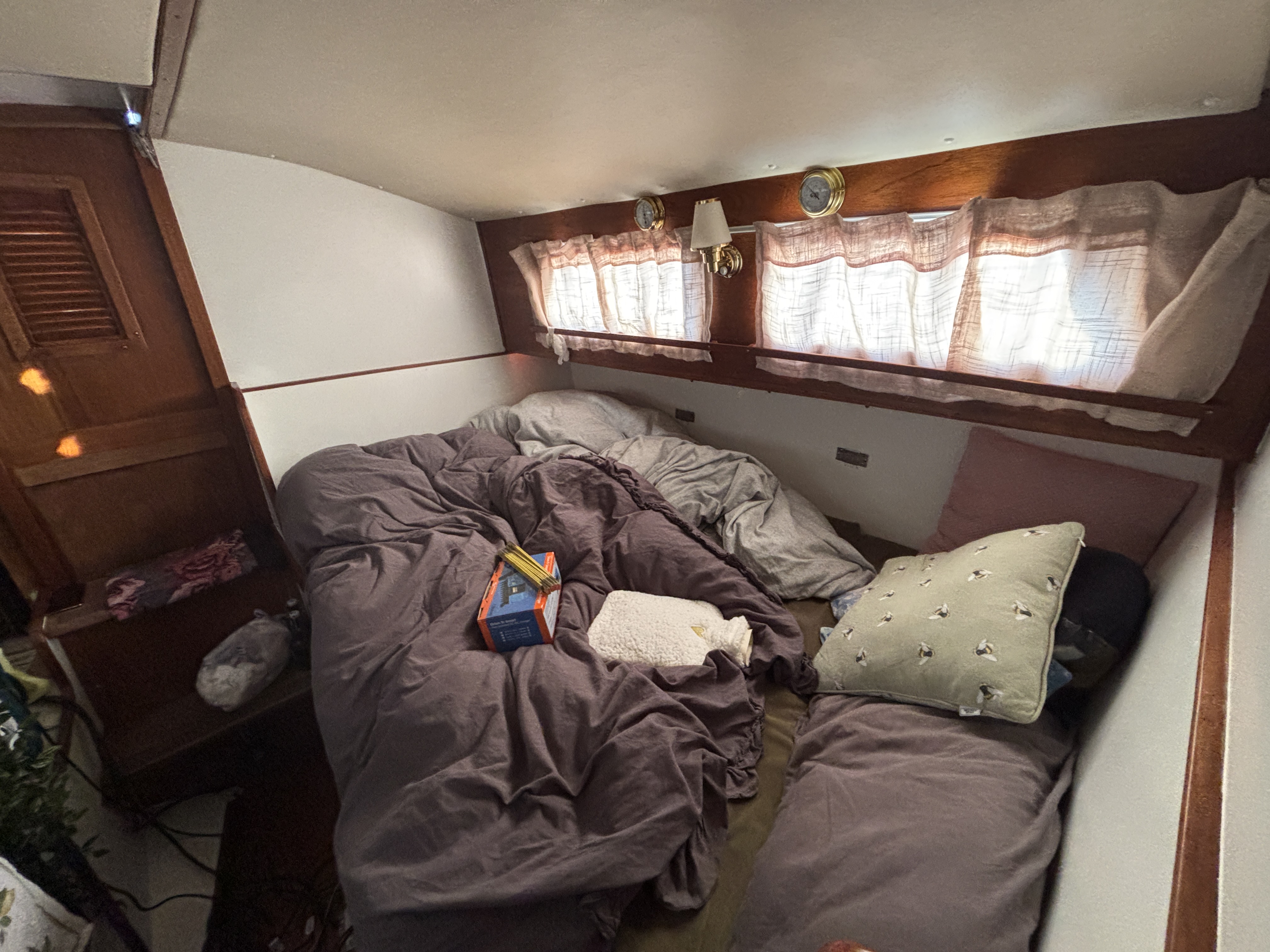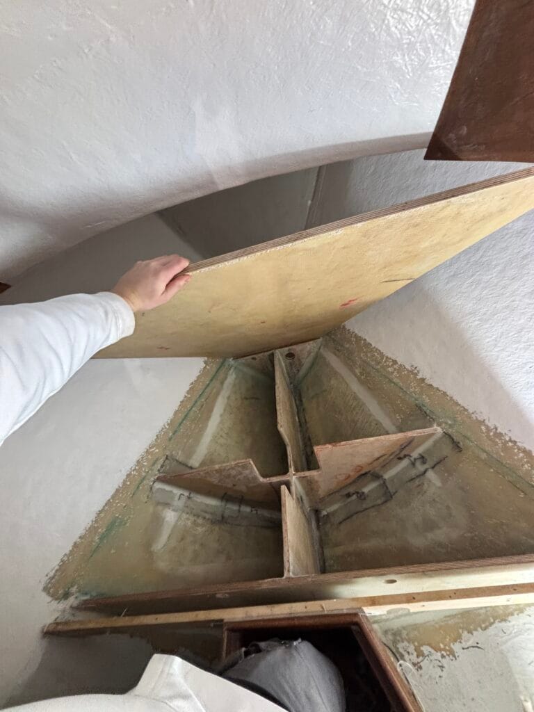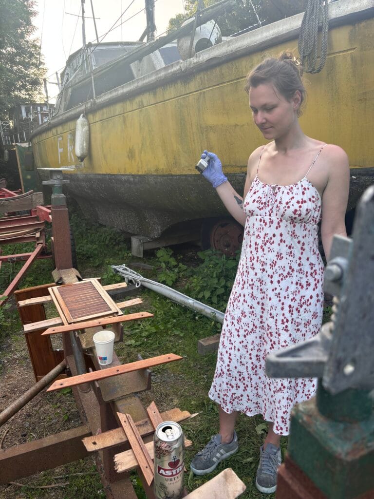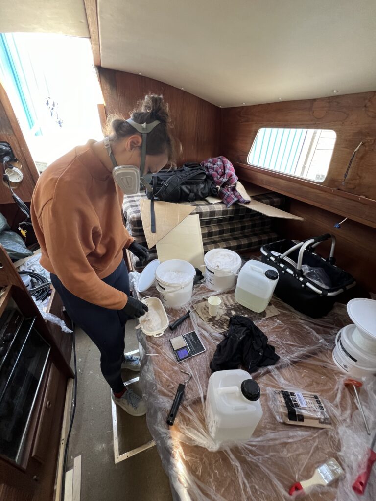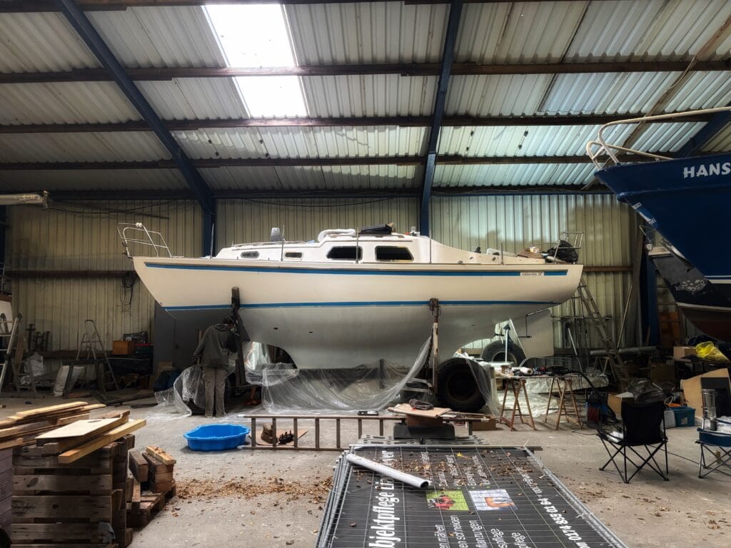 We found Quak, our Fellowship 28, in Flensburg, Northern Germany, in a pretty neglected condition she was quite moldy and dirty. After checking her out and massively underestimating the time it would take to refit her, we bought her for 2,500€. Over the next two years, we spent countless hours sanding and getting her back into a somewhat livable condition.
